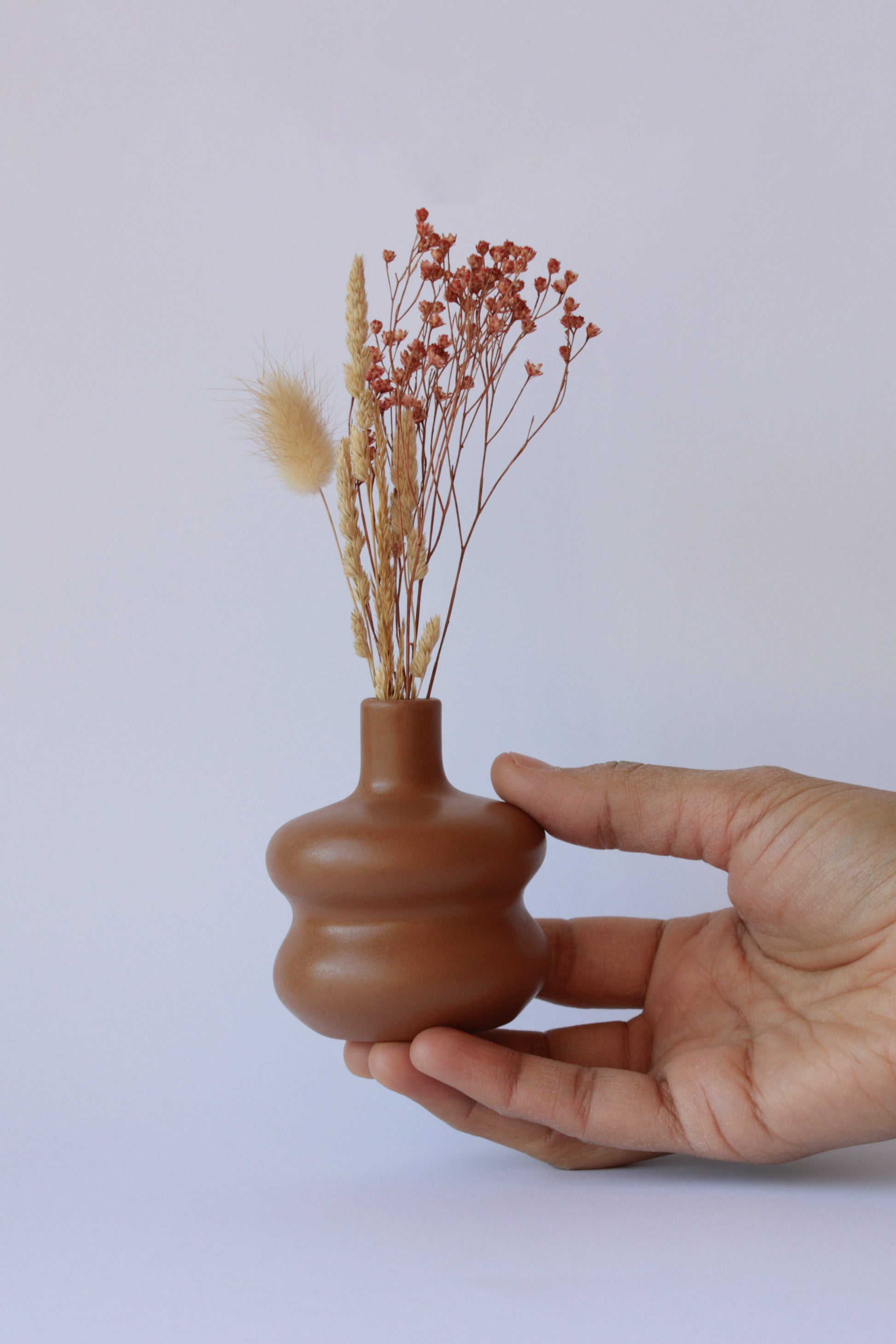 A MINI JARRA foi modelada na roda de oleiro, e mais tarde o formato foi capturado por um molde, onde a natureza da argila de grés torna cada peça única, com variações subtis.